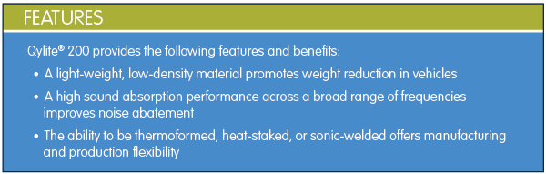 the acoustic performance to mass since Qylite® 200 is a light-weight material and, like its moldable and structural abilities to hold form over time, improves handling and reduces the use of fasteners, which helps reduce costs," said Philippe Knaub, Chief Technology Officer for FXI.