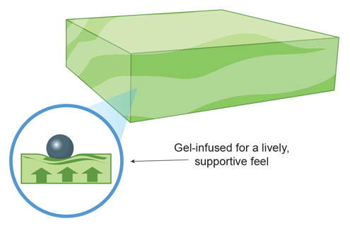 MemGel Lite® is a conventional foam infused with gel for a lively supportive feel, perfect for the top of a mattress in the quilted top panel or in the top comfort layers. It is the perfect, affordable option for strategically adding consumer requested gel to the mattress.