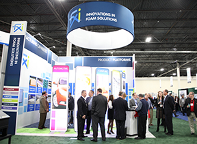 display of raw materials, chemicals, services, and manufacturing and processing equipment provided attendees with a comprehensive look at the technical foam industry.FXI stole the limelight—showcasing its foam solutions across a broad array of industries—transportation, industrial, home and office, healthcare, bedding, and furniture—alongside its newest innovations
